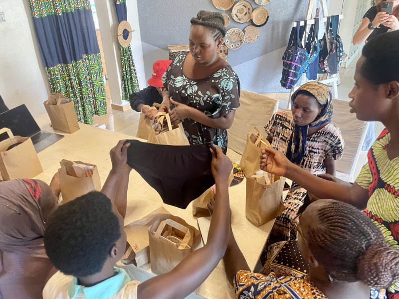 Holky v organizaci Talking Through Art uspořádaly prezentaci, během které mluvily obecně o hygieně, o ženském těle, menstruaci a menstruačních pomůckách. Každou pomůcku představily a vysvětlily, jak se používá, čistí a podobně. Ženy v organizaci to velmi zaujalo a měly spoustu otázek. Každá z nich dostala tašku, ve které měla set složený z menstruačních kalhotek, kalíšku, látkových vložek a univerzálního mýdla. Součástí balíčku byl také letáček ve rwandštině, který shrnoval informace ohledně hygieny a menstruačních pomůcek.