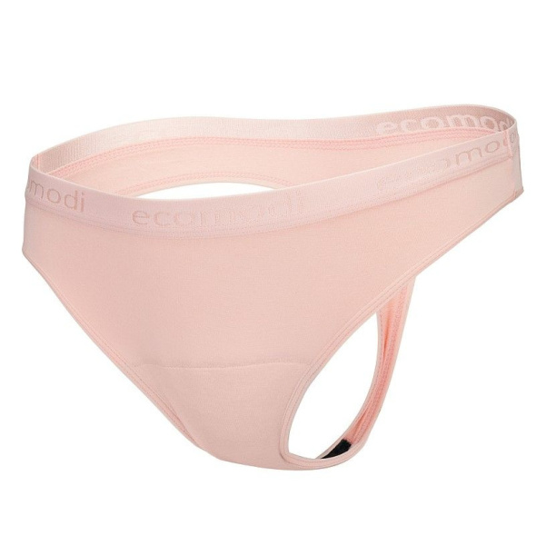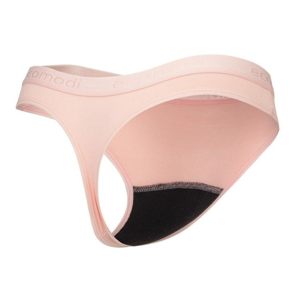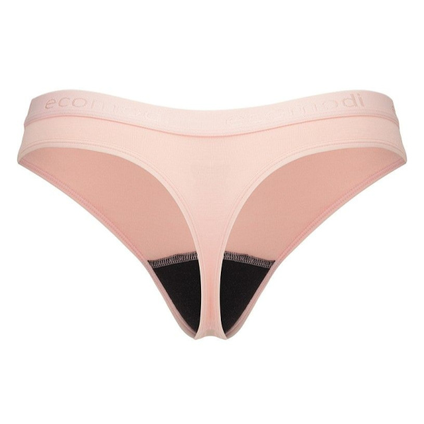 Při menstruaci „v plném proudu“ se pochopitelně nedá čekat, že by klín ve tvaru úzkého trojúhelníku všechnu krev zachytil. Ale pro dny, kdy na své měsíčky teprve čekáte, nebo se s nimi loučíte, můžete použít tanga Ecomodi, která bez problémů poberou slabé krvácení nebo špinění.